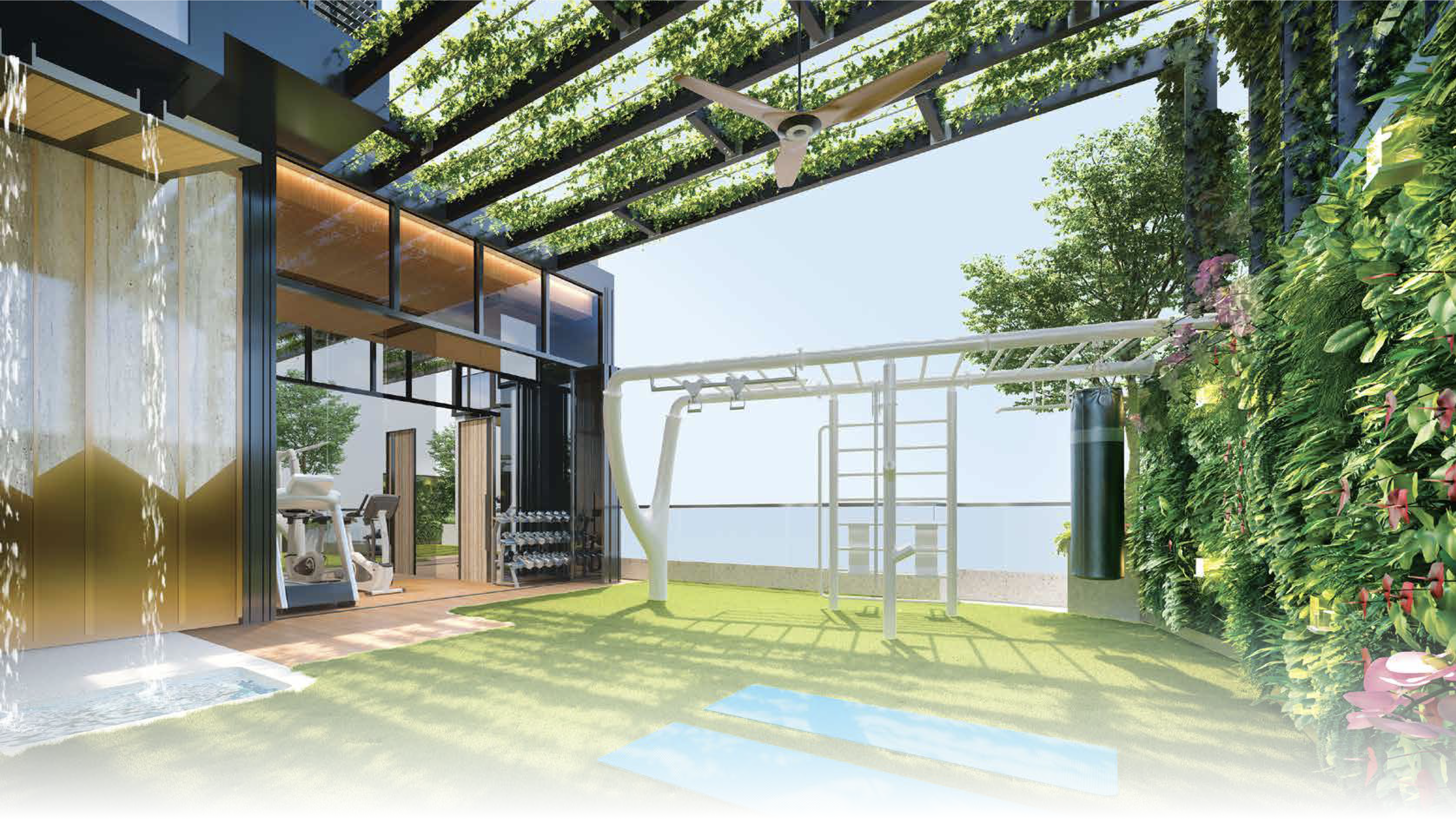 除室內健身室外,項目更將蓮動概念延伸至園林空間,引入意大利著名品牌MyEquilibria戶外多功能健身設備MyBeast Edge3 , 集攀爬、拳擊、垂直引體及拉力繩等功能於一身。